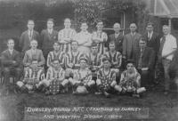 Dursley Association Football Club effectively began in October 1893 with the formation of a team supported by the St. James Club. This club was an organisation started at the beginning of that year by the clergy of St. James Church to foster the idea of healthy recreation for the young men of the town. The very first match was against Forest Green Rovers who came to the town in December 1893 but unfortunately the home team were beaten 2-0. The return match two weeks later at Forest Green's ground produced the same result but no doubt the fledgling Dursley football team had gained some good experience. In 1898, Dursley joined the new Dursley League, one of eight clubs who did so and at the same time they decided to drop the St. James suffix from their name. Dursley's fortunes up to the beginning of the First World War were mixed, with their best season being 1907/08 when they won the Dursley League championship. For the 1908/09 season they also joined the North Gloucestershire League in which they continued to play up to 1922 with the exception of the 1909/10 season. In 1919, following the return of men from the war, a new football club started up in Dursley which became known as the Dursley ex-servicemen. They competed in the Wotton League and they Second Division of the Dursley League, both of which they won during their first season - a great achievement. It was at the conclusion of this season that the team name was changed to Dursley Rovers, at the same time as the older club officially became known as Dursley Town. In 1922 the Gloucestershire Northern Senior League came into existence which Town and Rovers both joined although in 1926 the two clubs amalgamated, coincidentally at the same time as another club was formed, the team of R.A. Lister Engineering Works. 1939 was a good year for Dursley Town AFC as they won the Gloucestershire Senior Amateur Cup Final, beating Forest Green Rovers 3-1 in the replay after an initial 1-1 draw. War intervened again soon afterwards and most football clubs closed down with Dursley Town matches not resuming until 1944. A team for the town's youngsters, the Dursley Colts, was also formed in 1948 which took players aged 18 and under. The mid fifties were some of Dursley Town's most successful years. In 1955 they won the Stroud Senior Charity Cup and in 1956 they were again victorious when they came top of the Gloucestershire Northern Senior League (GNSL) Division 1. The 1960s through to the 1990s were relatively uneventful for Dursley's senior football club, no further championship victories followed and the team alternated between Div 1 and Div 2 of the GNSL apart from the 1968/69 and 1969/70 seasons when they played in the Wiltshire County Combination. In 1960 they did win the Stroud Senior Charity Cup Final and the Berkeley Premier Cup but thence followed a sparse period until 1995 when they won the Stroud Senior Charity Cup. This was followed in the 1995/96 season when at last they were champions again in the GNSL, after a gap of 40 years. Dursley Town Football Club continues to thrive, and home matches are still played regularly on the recreation ground in 2004. Ref: "Town Score 100+, The History of Dursley