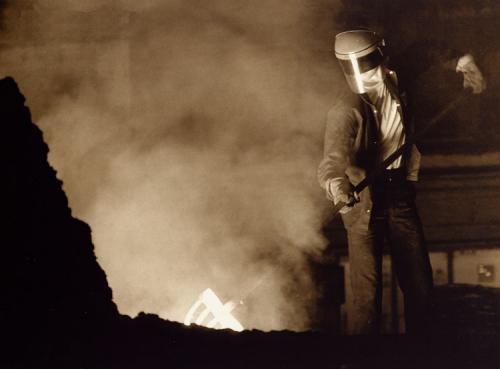 Tending the furnace at the Lister-Petter foundry
