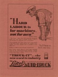 The marketplace had changed though and the boom was not to last. Increasing competition from abroad meant that the company needed careful management and this was provided by a new board of directors comprising of Ashton's grandsons Robert, Frank, Percy and George together with A.E.Mellerup. However it was still some time before another new product line was introduced, which arrived in the shape of the autotruck in 1926. These were a great success, serving a multitude of purposes transporting goods around factories, railway stations and dockyards the world over. In fact it was so successful that production continued all the way through to 1973. | |||||||||