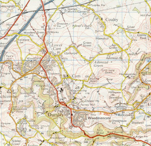 Reproduced by kind permission of Ordnance Survey. © Crown Copyright NC/02/3723. The engineering works of R.A. Lister have taken on a new significance and show signs of expansion, probably due in large part to the removal of the railway line which allowed the two halves of the site to be properly integrated. Other development in Dursley is somewhat constrained apart from Castle Street which is indicated in its final form making a head on junction with May lane. In Cam there is evidence of further building in the Tilsdown area. |