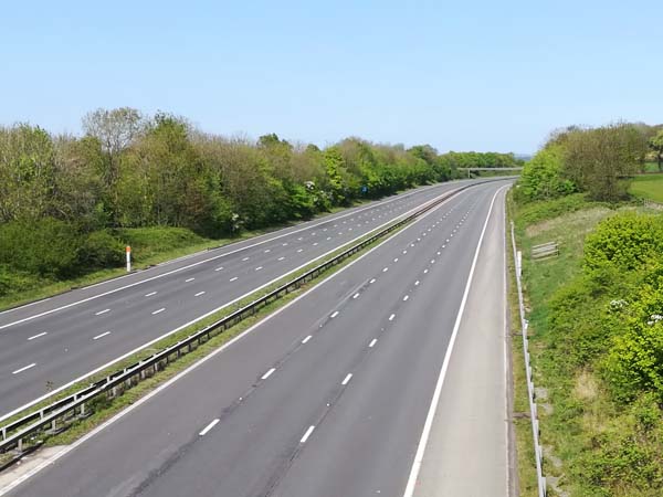 An empty M5 motorway viewed from Taits Hill during 'lockdown'