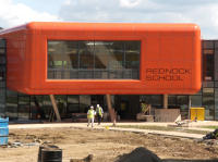 The brand new Rednock School has taken the last few steps before opening for the first time to children in September. The building was handed over at the end of July and the transfer of everything from the old school has been ongoing for several weeks. Landscaping at the front of the new building and final surfacing of the car park is now complete and it awaits its new residents. At the same time, the focus has switched to the old buildings and contractors are on site to tear down them down in readiness for site clearance and landscaping.