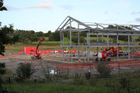 The latest big building project in town is the new Community Hospital at the bottom of Kingshill Lane on the Littlecombe site. Dursley has certainly seen its fair share of new construction over the last few years and this is just the latest in a long line. Not far away, work continues on the many new houses which are being built at the Cam end of the site. This site is certainly a vast one, with plenty of land still undeveloped and waiting new use. Although much of the site is closed to public access at present, travelling through it from Cam takes you close to the newly uncovered stream, past the small industrial units and eventually to the remaining Lister factory buildings near Long Street.