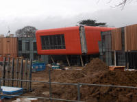 Progress on many of the town's building works slowed during the last two weeks of December as the holiday period encroached. The scaffolding came off the new bright orange central portion of the new Rednock School, revealing it in all its glory. The new fire station also moved on and with the addition of the three red doors is now clearly advertising its purpose as it nears completion. On the Castle Street site which will soon be occupied by Sainsbury's, preparatory clearance works have begun with some trees being felled. The long-term car parking on the nearby Rack Field is also to be moved to the old Gazette print-works site as a temporary measure. In Cam, the redevelopment of the garage forecourt at Draycott is progressing at a very fast pace and it won't be too long before it is back in action. |