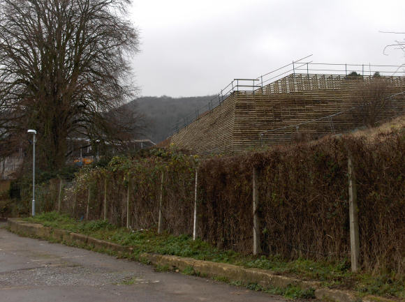 Wooden structure at the end of the new (Rack Field) car park