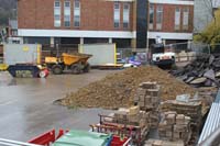 The Christmas season has arrived and the lights are up all around town, giving an attractive glow to the streets. That doesn't mean that work has stopped elsewhere, though it's certainly slowed things down. The new swimming pool access ramp is up and running allowing the old ramp area to be redeveloped for the Sports centre extension. On the Littlecombe site almost all traces of Lister's have now gone and the Long Street end of the site is occupied by large heaps of soil which has been moved from other parts of the site. |