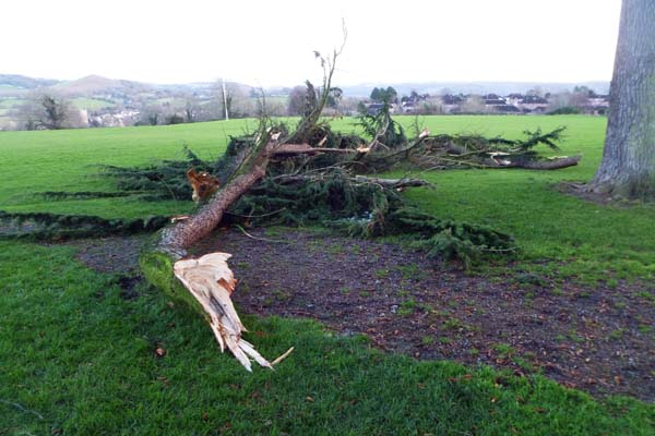 Heavy snow brings down branches of cedar trees at Norman Hill