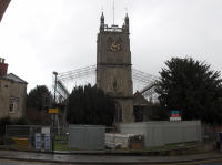 February 8th 2007 saw the first snow in Dursley for several years although it didn't hang around too long. Rain came along in the afternoon, the temperatures rose and it rapidly disappeared. The annual Dursley Dozen race took place the following weekend which started in a torrential downpour only for it to change to sun and blue skies for the rest of the 12 mile arduous tour of the hills around the town. In the centre of town, work began on replacing the roof of the Parish Church when scaffolding started to go up. This alone was a mammoth task which didn't get completed until the end of the month. |