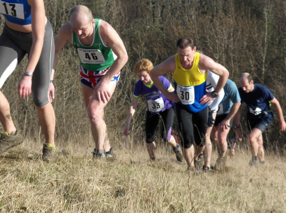 Dursley Dozen runners climb "The Precipice" on Stinchcombe Hill