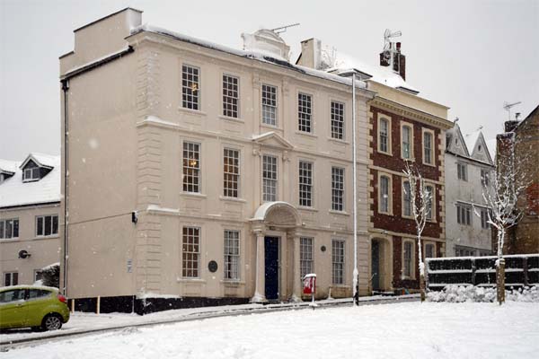 Snow laying outside Raglan House in Long Street