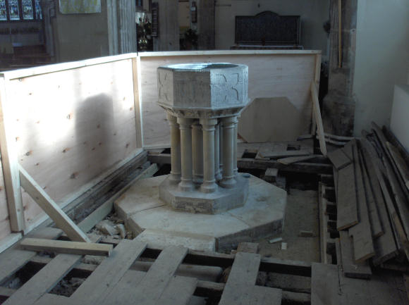 St. James' Church font in its new position
