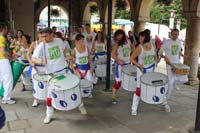 It was festival time during July with activities in the town centre on the weekends of 7th and 14th of the month. The main town festival day was unfortunately affected by the earlier very wet weather which meant that the recreation ground was not available. It did go ahead though and crowds gathered to enjoy themselves in the market place and Parsonage Street. The end of July also saw the start of the London 2012 Olympics and there was evidence of this with the giant banner on the swimming pool wall.