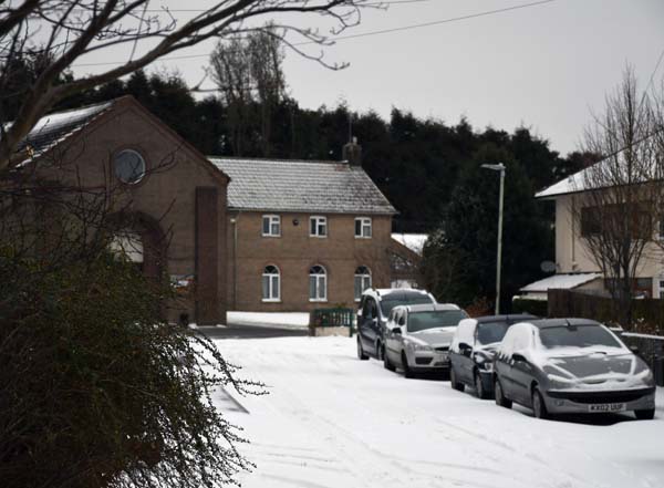 Snow surrounds St. Dominic's Church in Jubilee Road