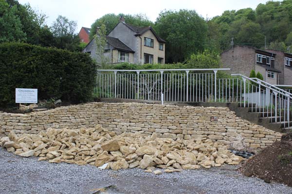 New Cotswold stone wall at the entrance to May Lane Surgery