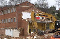 November 2007 has been a significant one for Dursley as work finally began on the £28M rebuild of Rednock School after a long time in the making. The current school first opened as Dursley Grammar in 1921 when it was situated in the old Rednock House. Piecemeal development over the intervening years resulted in a very mixed bag of buildings, many of which have not been particularly suitable for educational use in more recent years. The first sod has now been cut and demolition has begun on the old music block so the next 20 months should be an exciting time as the new futuristic buildings take shape on the current playing fields. The school is due to open in September 2009 at which time most of the old buildings should finally disappear.
