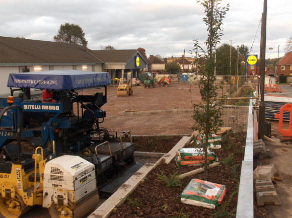 Limited landscaping is installed at LIDL