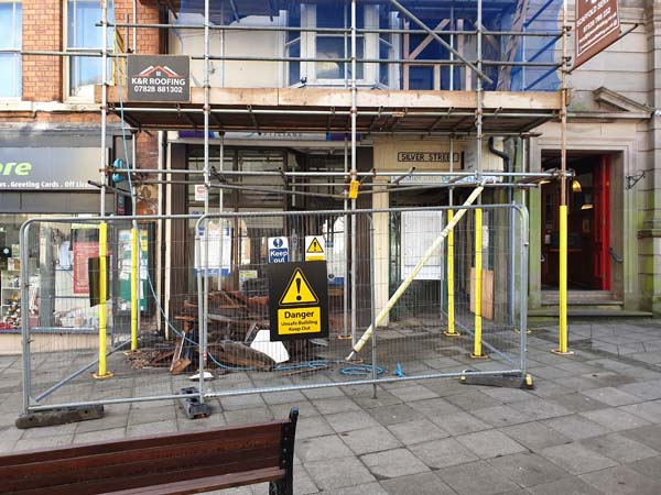 Scaffolding surrounds the Norville premises in Parsonage Street