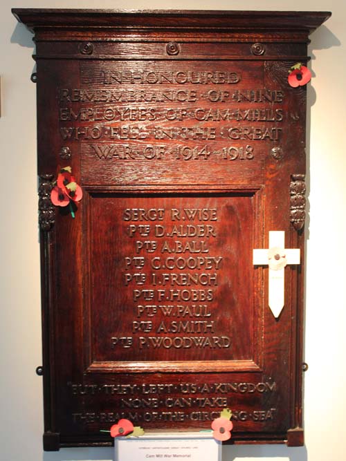 The war memorial inside Cam Mills