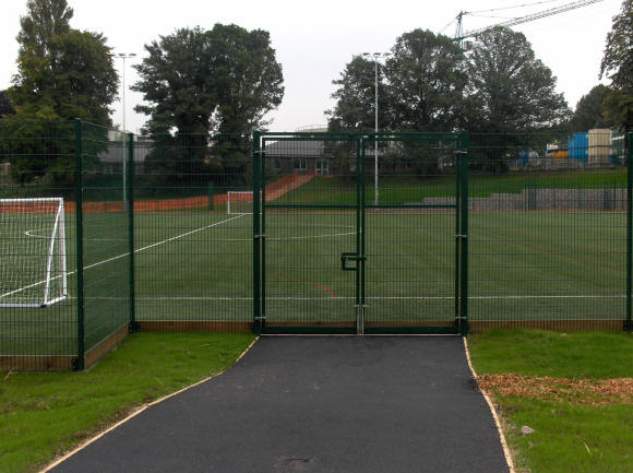 The gates to the new all-weather pitch at Rednock School