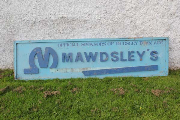 Old Mawdsley's sign showing their sponsorship of Dursley AFC