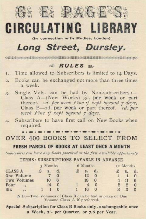 G.E. Page's Circulating Library Rules, Long Street, Dursley