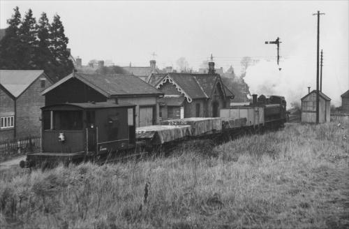 GWR Engine no. 7435 passes Cam Station with a goods train