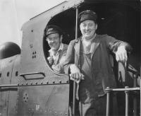 In the cab (L-R) are: Geoff Cross (fireman) and Eric Ford (Gloucester