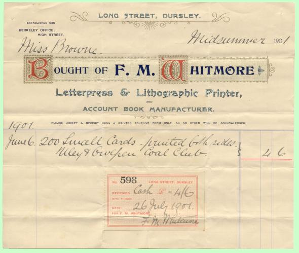 Invoice from F.M. Whitmore, Letterpress & Lithographic Printer