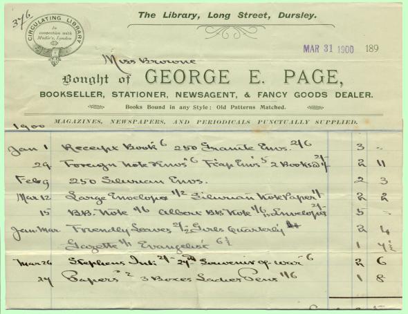 Invoice from George E. Page, Bookseller, Stationer