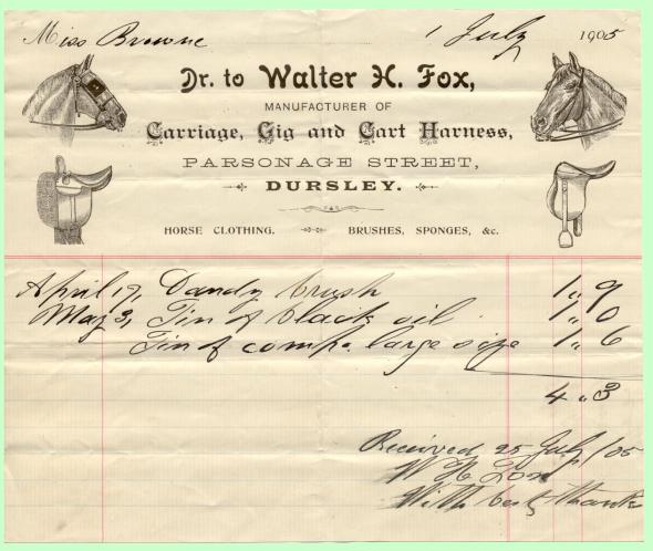 Invoice from Walter H. Fox, Carriage, Gig and Cart Harness