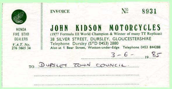 Letterhead from John Kidson Motorcycles